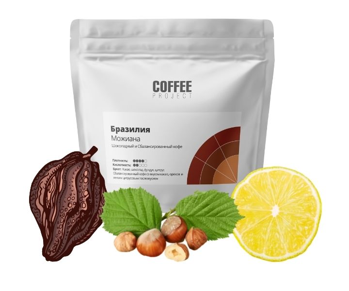 Бразилия Можиана плотный сбалансированной кофе с кремовой текстурой. В его вкусовом профиле преобладают ноты фундука, цитрусовых и какао.